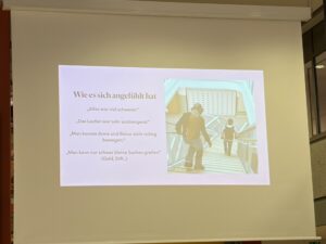 Besonders eindrucksvoll waren erneut die Begegnungen mit Menschen, die ihre persönlichen Geschichten und Herausforderungen teilten. Frau Yvonne Laves bot den Schülerinnen und Schülern die Möglichkeit, sich selbst in die Lage von Rollstuhlfahrerinnen und -fahrern sowie blinden und gehörlosen Menschen zu versetzen. Ein Stadtgang mit simulierten Einschränkungen hinterließ einen bleibenden Eindruck bei den Teilnehmenden.