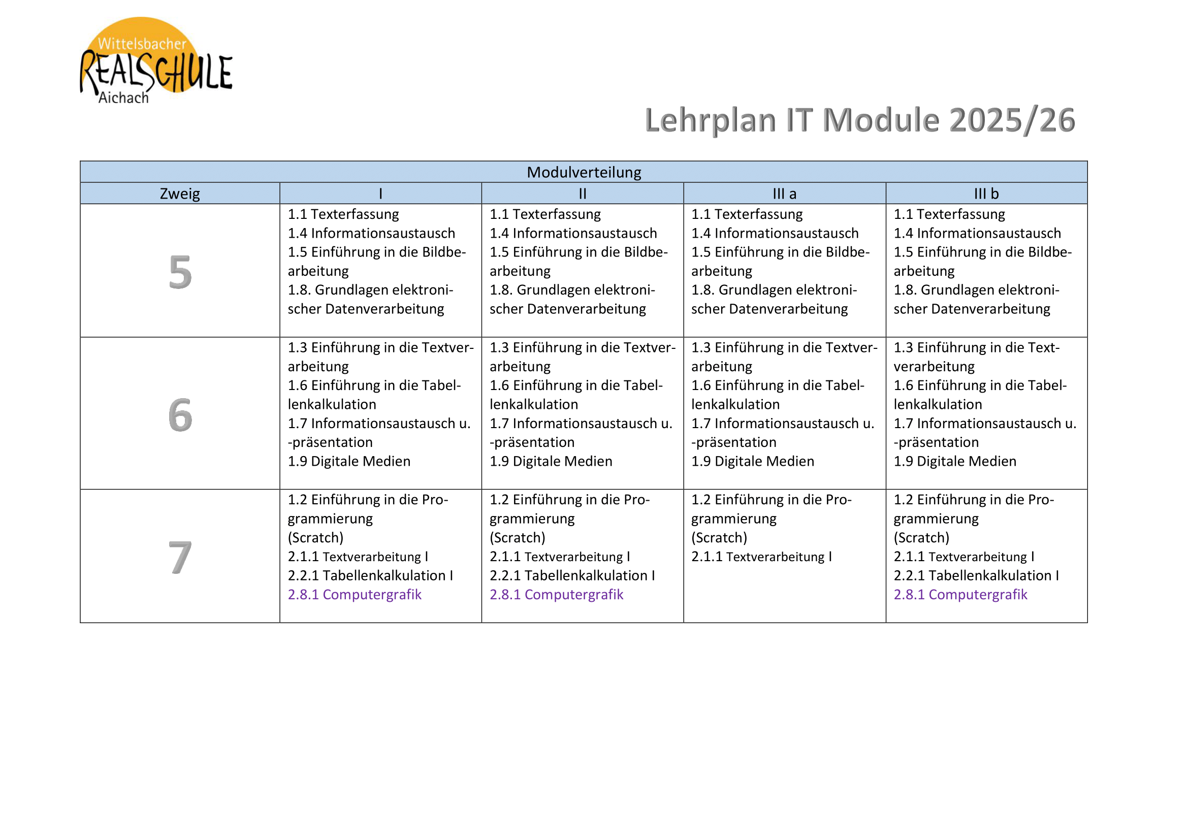 Modulverteilug im Fach IT: